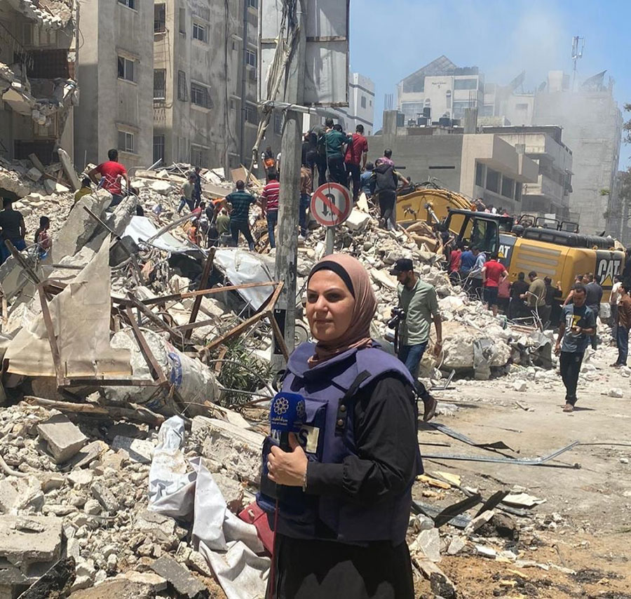 Suad Al-Imam, a correspondent for Kuwait TV stationed in the Gaza Strip, miraculously survived an intense bombing by the Israeli occupation forces on Thursday. The attack targeted a house near Kuwait hospital in Rafah City, located in the southern part of the Strip.