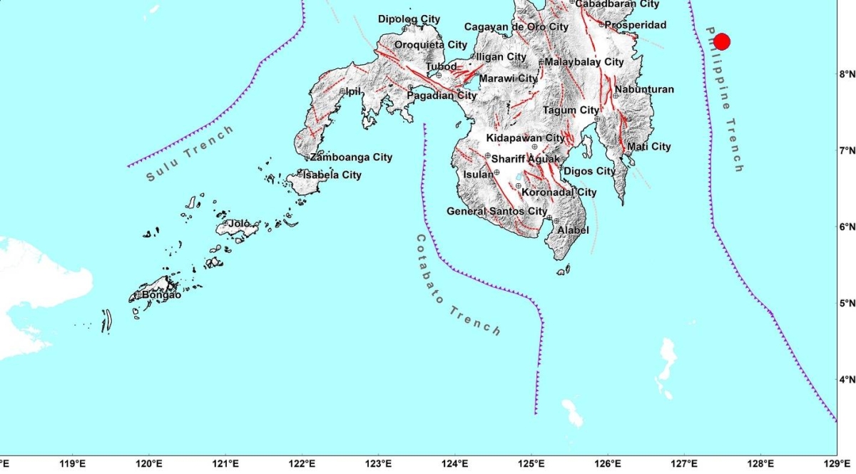 The earthquake, with a depth of focus of 25 kilometers, occurred around 10:37 p.m. approximately 30 kilometers northeast of Hinatuan, Surigao del Sur. According to Phivolcs director Teresito “Toto” Bacolcol, sea level monitoring stations confirmed the occurrence of a tsunami with preliminary wave heights of 0.64 meters in Mawes Island, Hinatuan, 0.18 meters in Lawigan, Bislig City, 0.05 meters in Port of Dapa, Surigao del Norte, and 0.08 meters in Mati, Davao Oriental. The last recorded tsunami wave arrival occurred at 02:52 a.m. (Sunday) at Hinatuan-Bislig Bay Station on Mawes Island.